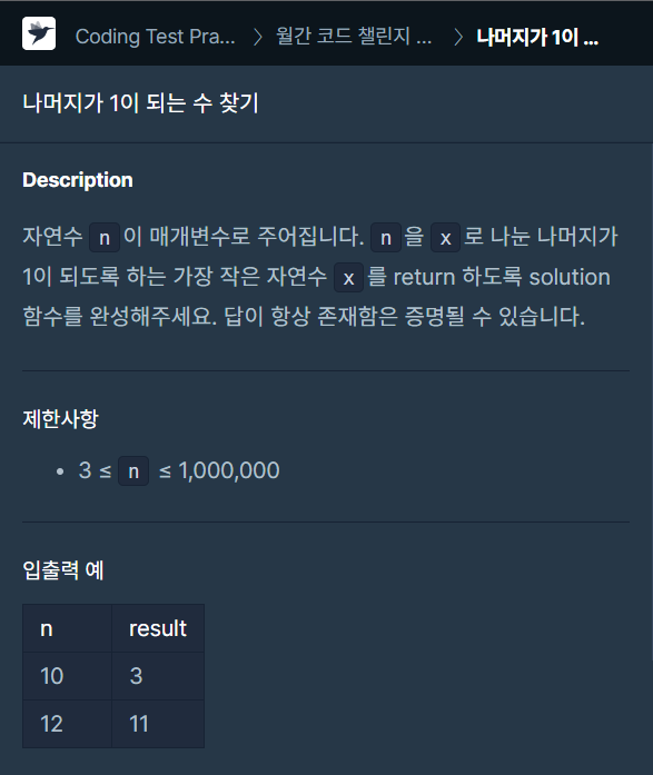 - n์ x๋ก ๋๋์์ ๋ ๋๋จธ์ง๊ฐ 1์ธ์ง ํ์ธํ๊ธฐ (if๋ฌธ ์ฌ์ฉ)