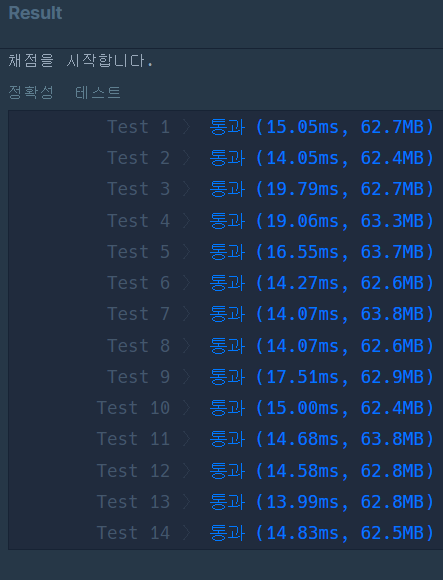 ํ ์คํธ์ ํต๊ณผํด์ ์ ๋ต์ด ๋ง๋๋ค๊ณ ์๊ฐํ๋๋ฐ ๋ฌธ์ ๋ฅผ ์ ์ถํ๋๊น test 13๊ณผ test 14์ด ํ๋ ธ๋ค๊ณ ๋ด๋ค.